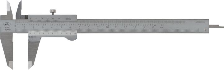 Prevedenie: Z kalenej INOX ocele. Nonius a stupnice v matnom chróme, hlavné stupnica je zapustená hlbšie kvôli ochrane proti opotrebovaniu, s hranatým hĺbkomer, tabuľka závitov na zadnej strane. Dodávame v púzdro.