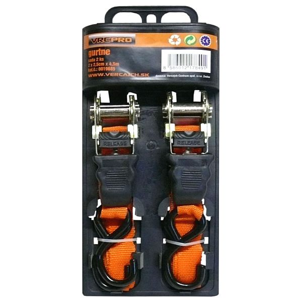 Upínací popruh s račňou, 2,5 cm x 4,5 m, nosnosť 500 kg, 2 ks VRCPRO